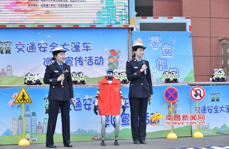 人形機(jī)器人化身“交通安全宣傳員”,與師生互動(dòng)普法;機(jī)器狗靈活地穿梭在模擬場(chǎng)景中,時(shí)而停下 “警示” 闖紅燈的 “虛擬行人”,時(shí)而演示正確的過(guò)馬路方式……日前,在南昌理工學(xué)院神劍廣場(chǎng),一場(chǎng)以“科技助力安全,共建平安校園”為主題的交通安全“科技大篷車(chē)”創(chuàng)新宣傳活動(dòng)引來(lái)圍觀。