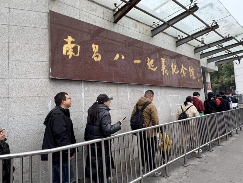 1月24日,南昌八一起義紀念館門口,游客們井然有序地排隊進入館內參觀。