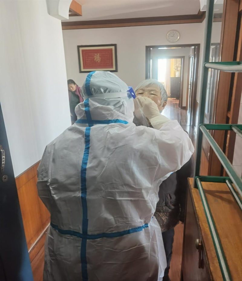 自南昌市開展第一輪較大范圍區(qū)域核酸采樣以來,彭麗群同志一直堅持在核酸采樣第一線。4月初的一天,長期穿防護(hù)服戴N95口罩的她感覺胸悶不適,社區(qū)衛(wèi)生服務(wù)中心主任在巡查各采樣點的時候就發(fā)現(xiàn)了她的異常,趕緊找其他同事替換她下崗,并交代她一定要注意休息,但倔強的她只休息了一會就又重新回到了崗位上。