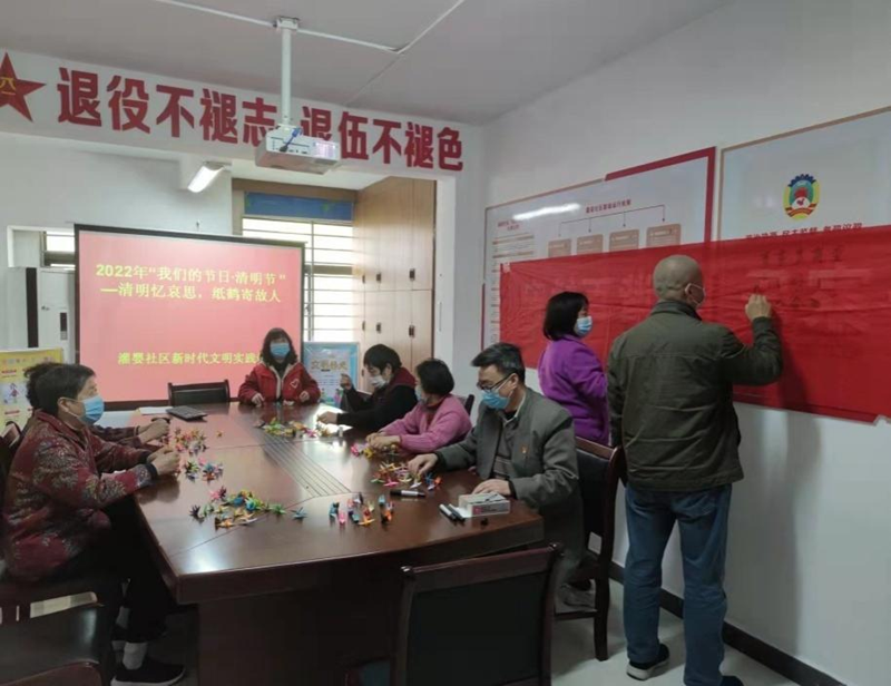 清明節(jié)是我國最重要的傳統(tǒng)節(jié)日之一。為了有效切斷疫情傳播途徑,今年清明節(jié),我市一律暫?,F(xiàn)場祭掃,提倡以代為祭掃、網(wǎng)絡(luò)祭掃、家庭追思等文明祭掃新方式來緬懷逝者。4月3日,灌嬰社區(qū)組織黨員、退役軍人、居民代表在社區(qū)新時代活動實踐站內(nèi)開展“2022年我們的節(jié)日·清明節(jié)——清明憶哀思,紙鶴寄故人”活動。活動中,居民們親自動手折紙鶴、寫簽名表達對逝去親人們的哀思之情。