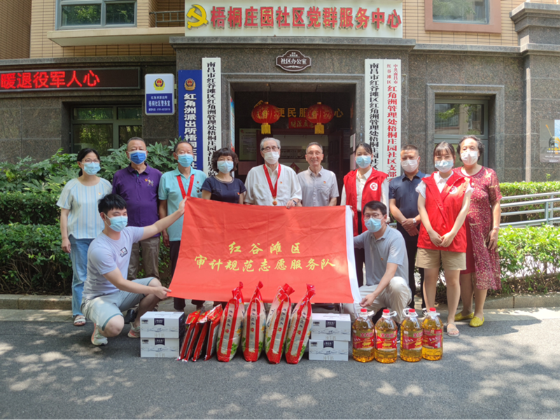 在“八一”建軍節(jié)當(dāng)天,紅谷灘區(qū)審計規(guī)范志愿服務(wù)隊來到梧桐莊園社區(qū)開展走訪慰問活動,為4名退役軍人送去愛心物資,向他們表達(dá)崇高的敬意并致以節(jié)日問候。