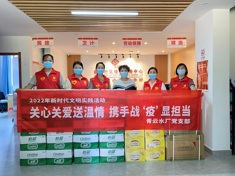 為積極響應(yīng)號(hào)召,助力疫情防控工作,7月14日,青云水廠組織黨員志愿者前往青云譜區(qū)徐家坊街道建北社區(qū)核酸檢測(cè)點(diǎn),開(kāi)展“關(guān)心關(guān)愛(ài)送溫情 攜手戰(zhàn)‘疫’顯擔(dān)當(dāng)”志愿服務(wù)活動(dòng)。志愿者們?yōu)榉酪咭痪€工作人員送去5600只口罩、480瓶純凈水、15箱蛋糕等防疫物資,感謝大家為疫情防控作出的貢獻(xiàn),并不斷提醒工作人員在做好疫情防控工作的同時(shí),也要做好個(gè)人防護(hù)和防暑工作。